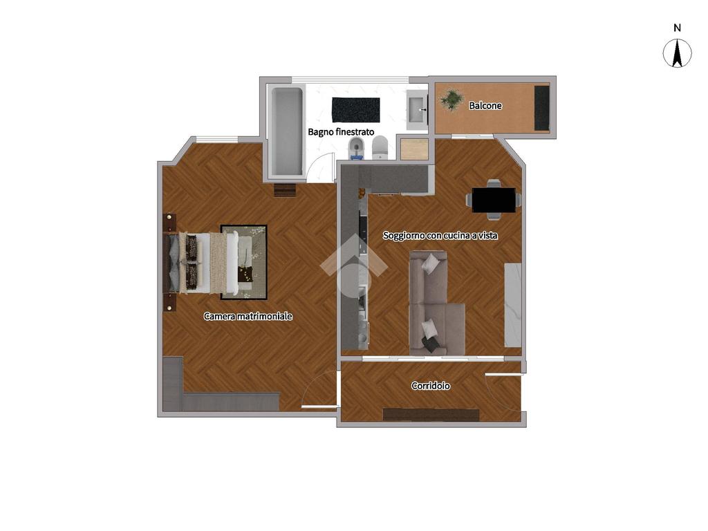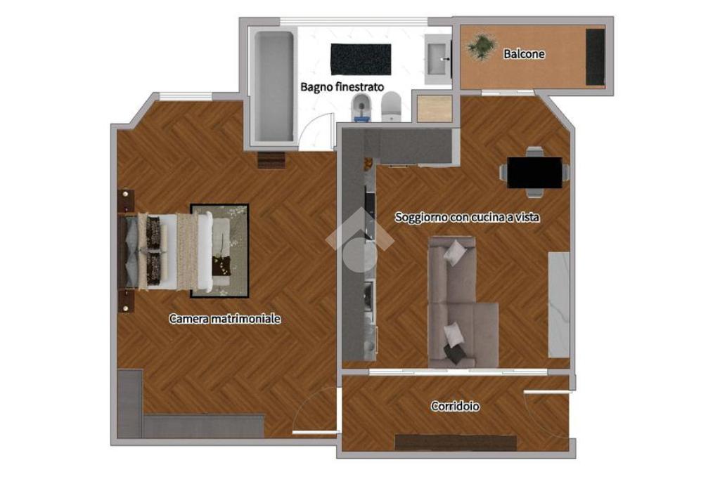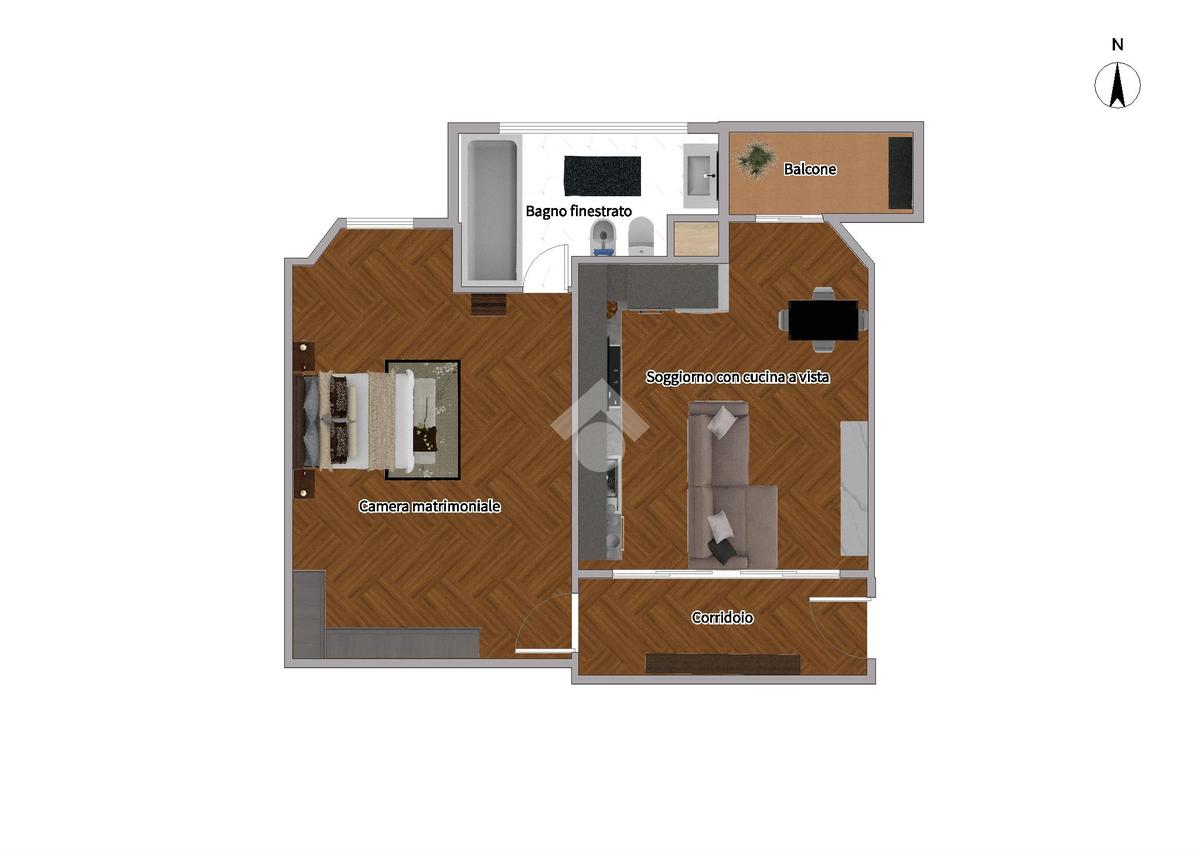L’appartamento, luminoso e silenzioso, si apre su un ingresso che conduce a un soggiorno accogliente con cucina a vista e accesso al balcone, ideale per momenti di relax. La camera da letto matrimoniale è ampia e tranquilla, con affaccio sul cortile interno. Il bagno finestrato, moderno e completo di ogni comfort, aggiunge un tocco di praticità e stile.