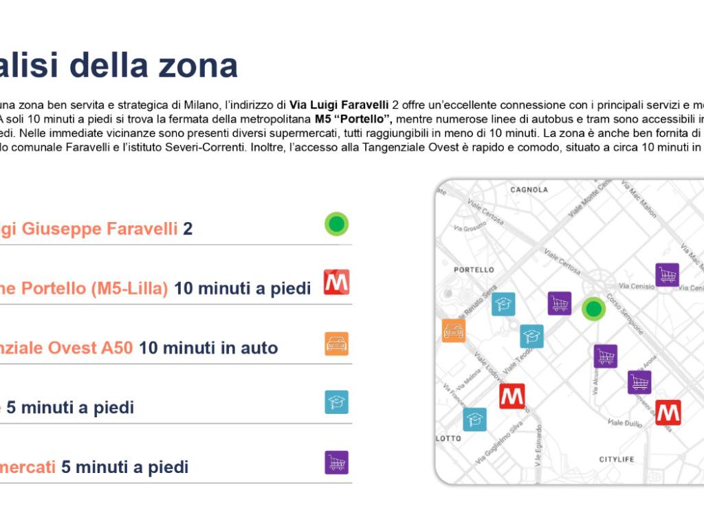 Via Faravelli 2: una via tranquilla, a due passi da CityLife, ben servita da negozi, ristoranti, supermercati, aree verdi e mezzi pubblici. Il contesto ideale per chi cerca una casa comoda, centrale e dal design contemporaneo.