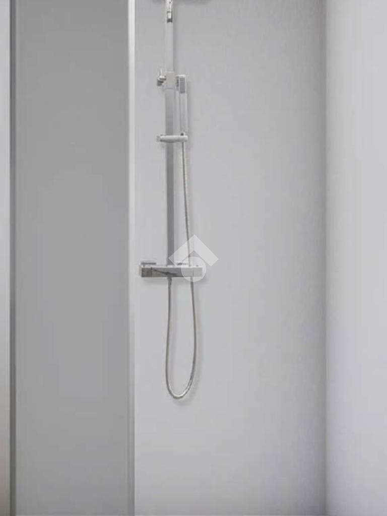 Le finiture sono state selezionate con grande attenzione ai dettagli: parquet in rovere a doga larga che dona calore ed eleganza agli ambienti principali, bagno rivestito in ceramica Florim grigio chiaro formato 30x60, sanitari sospesi e lavabo dalle linee pulite. Il box doccia, realizzato su misura in ardesia satinata bianca, aggiunge un tocco ricercato. Serramenti in PVC con doppio vetro assicurano un eccellente isolamento termo-acustico, migliorando il benessere abitativo in ogni stagione.