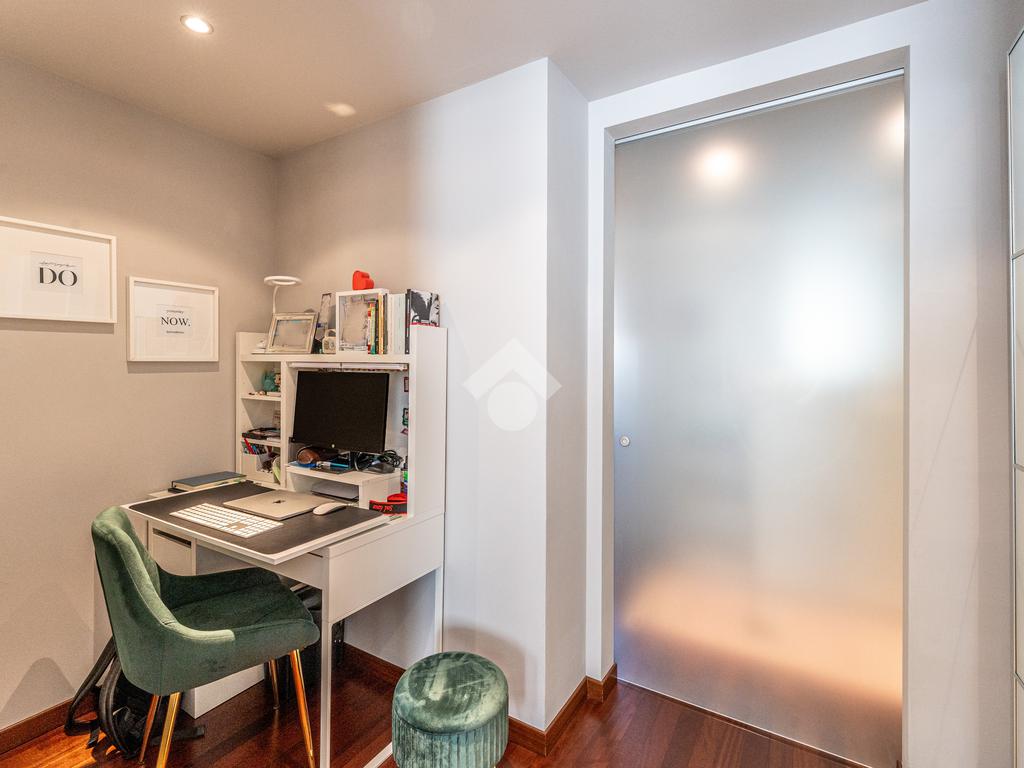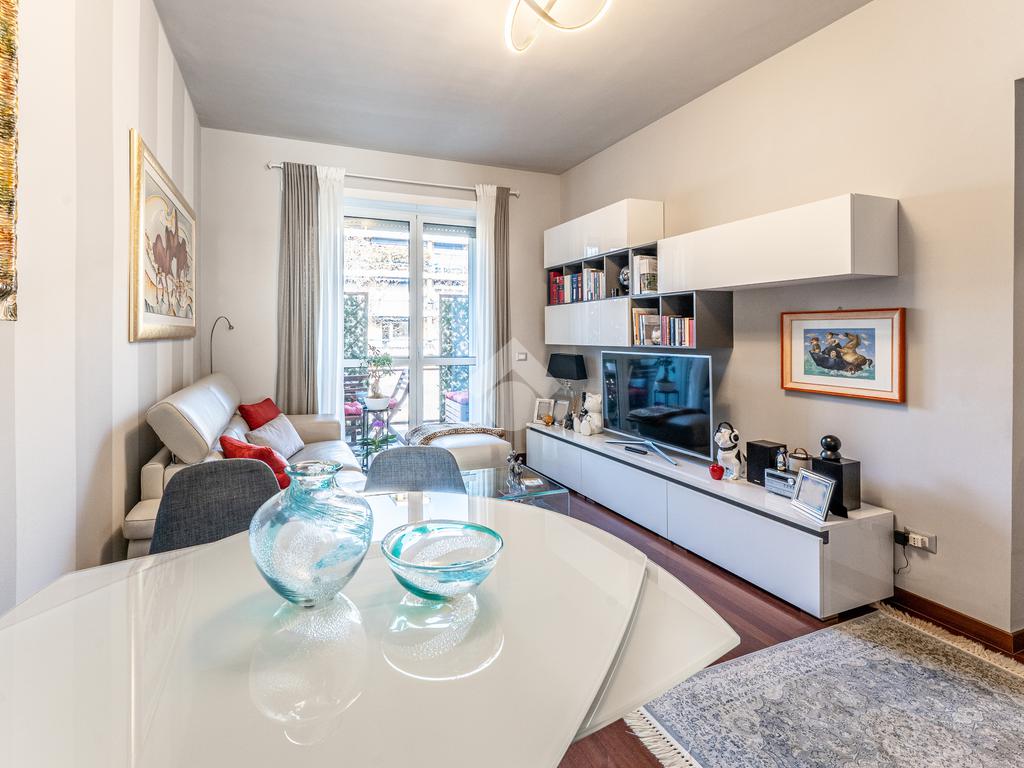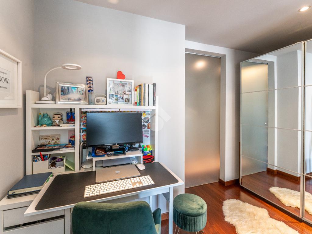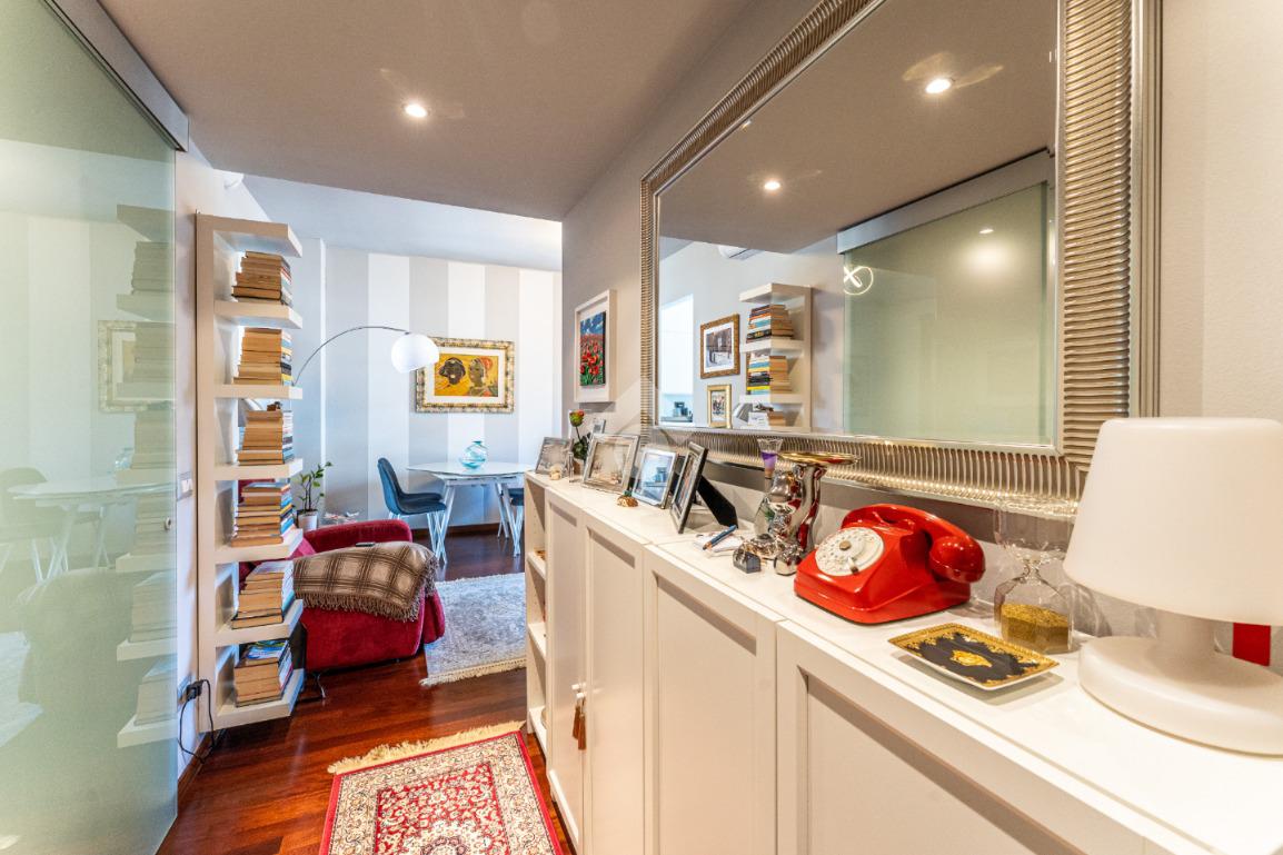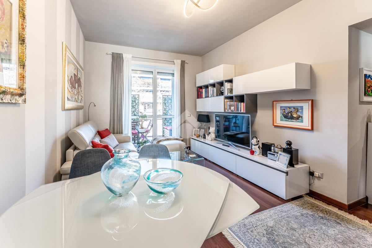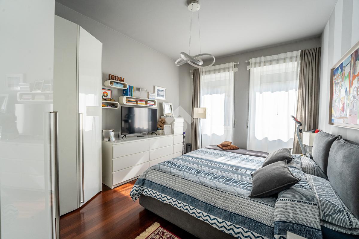Lo stabile è dotato di servizio di portineria e doppio ascensore. Il riscaldamento è centralizzato a pavimento e l’appartamento è provvisto di aria condizionata in soggiorno e camera, assicurando comfort in ogni stagione.