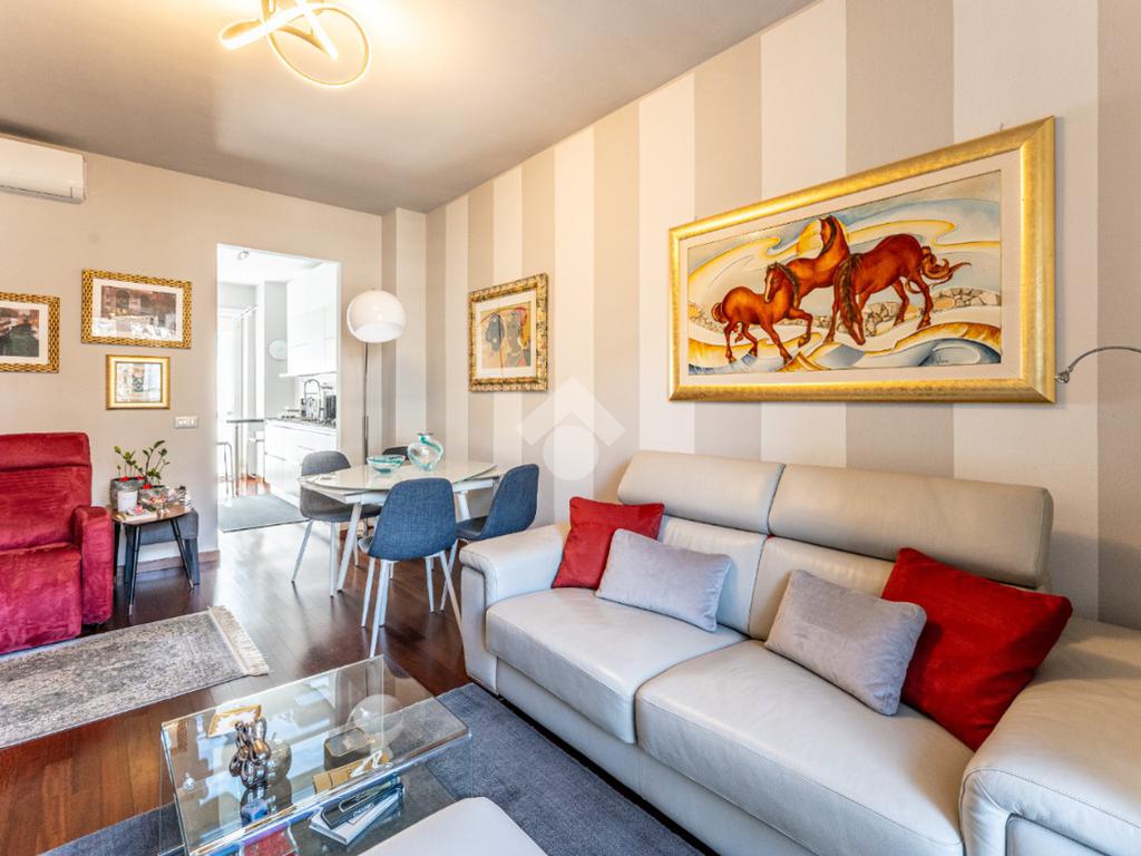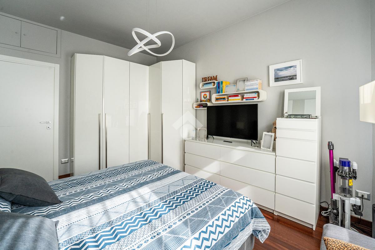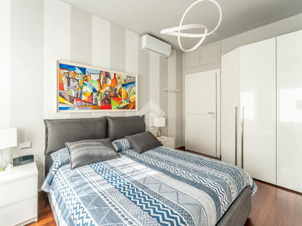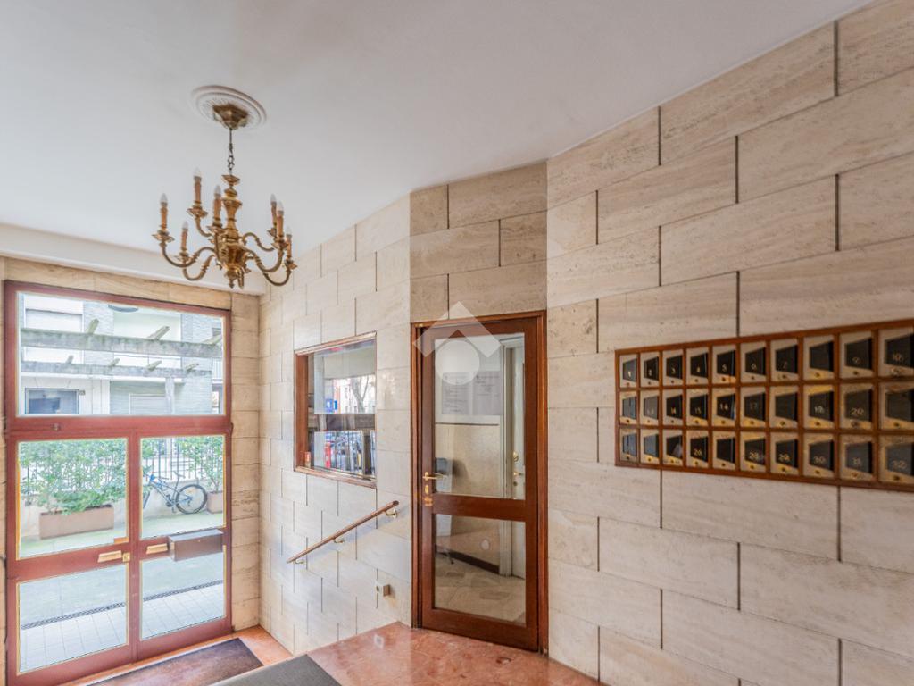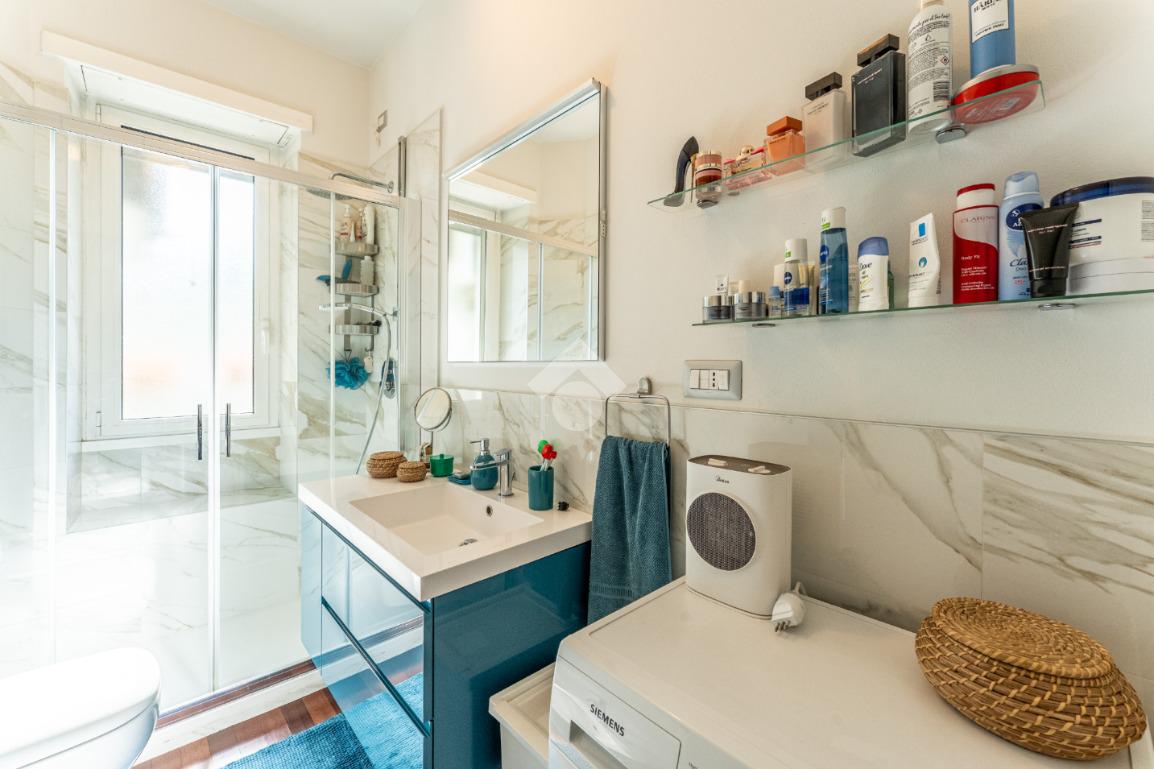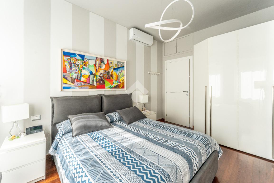 Lo stabile è dotato di servizio di portineria e doppio ascensore. Il riscaldamento è centralizzato a pavimento e l’appartamento è provvisto di aria condizionata in soggiorno e camera, assicurando comfort in ogni stagione.