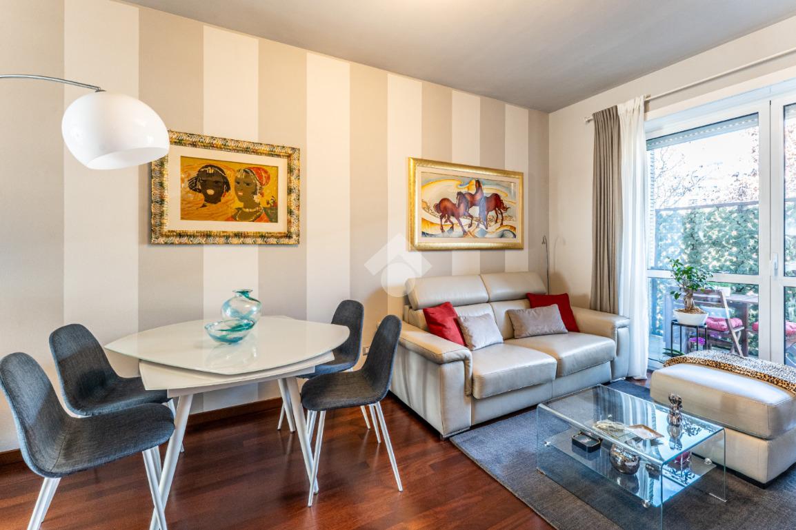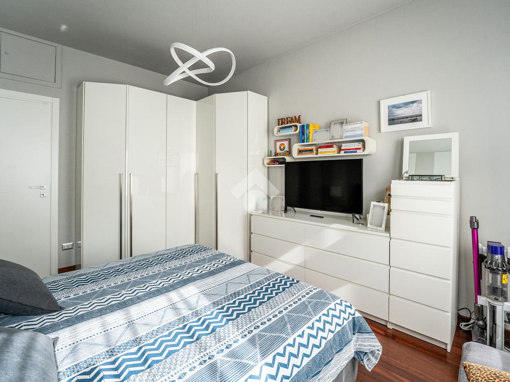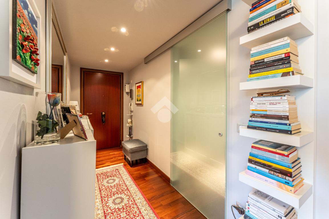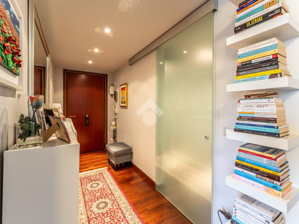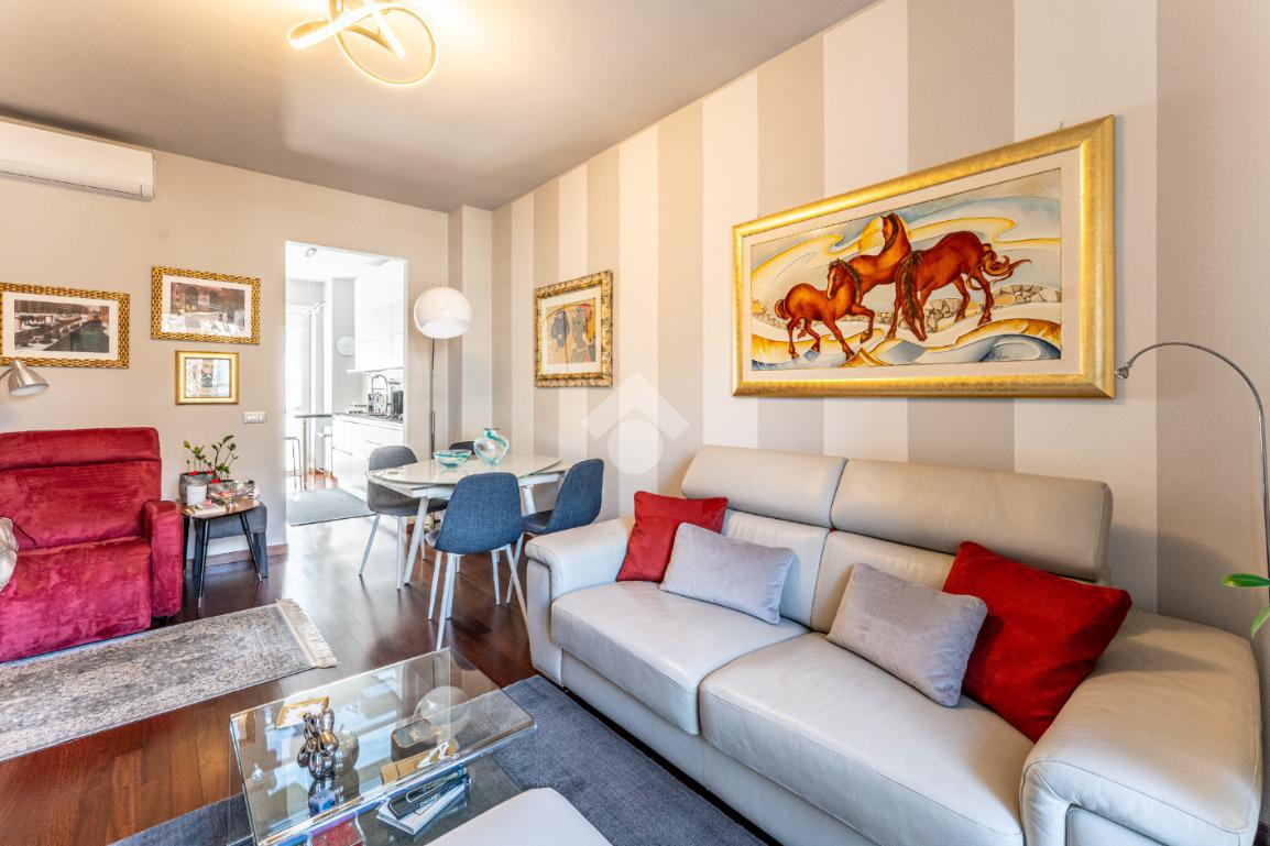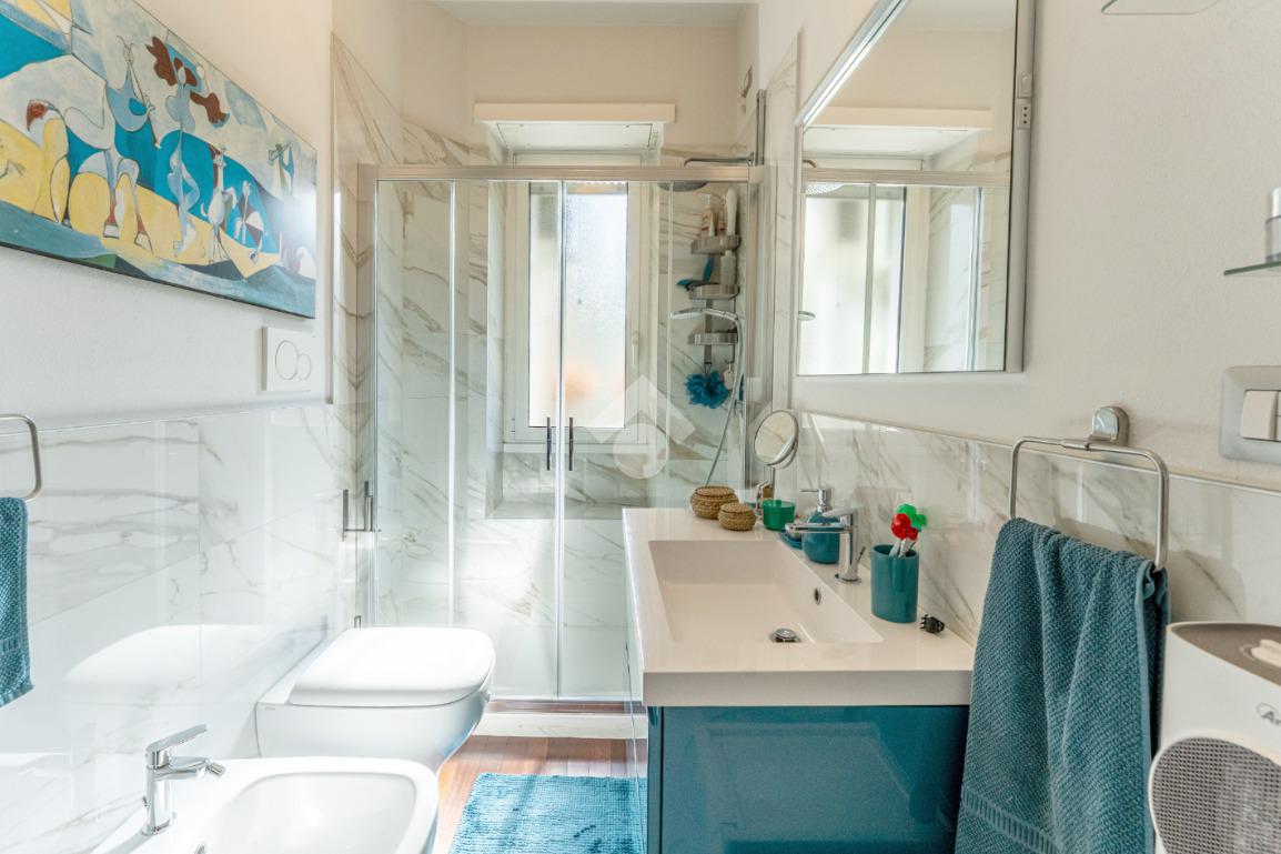 Lo stabile è dotato di servizio di portineria e doppio ascensore. Il riscaldamento è centralizzato a pavimento e l’appartamento è provvisto di aria condizionata in soggiorno e camera, assicurando comfort in ogni stagione.